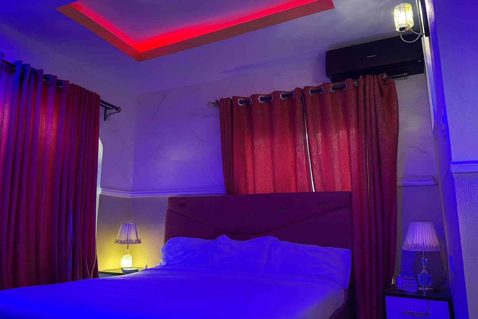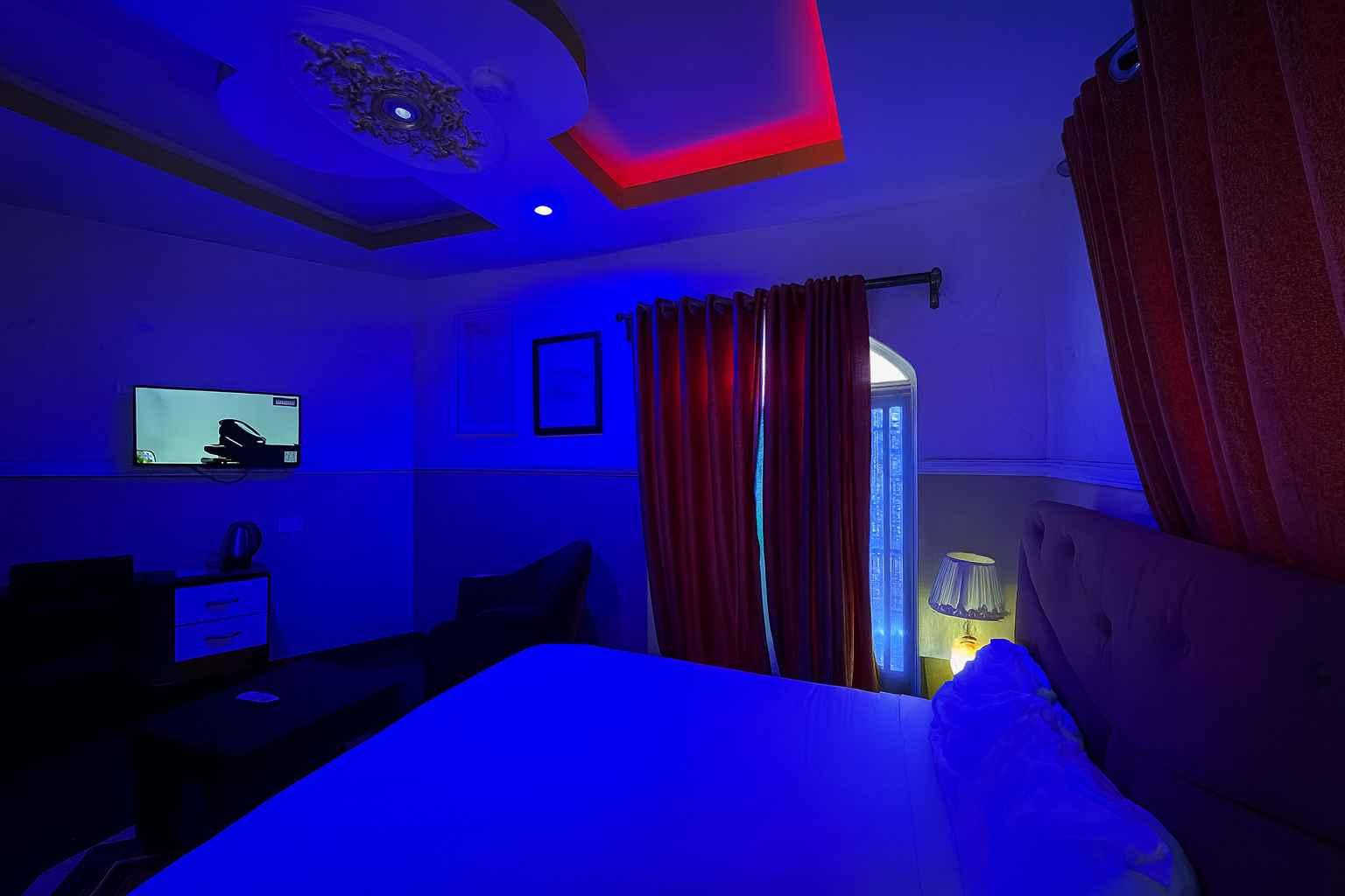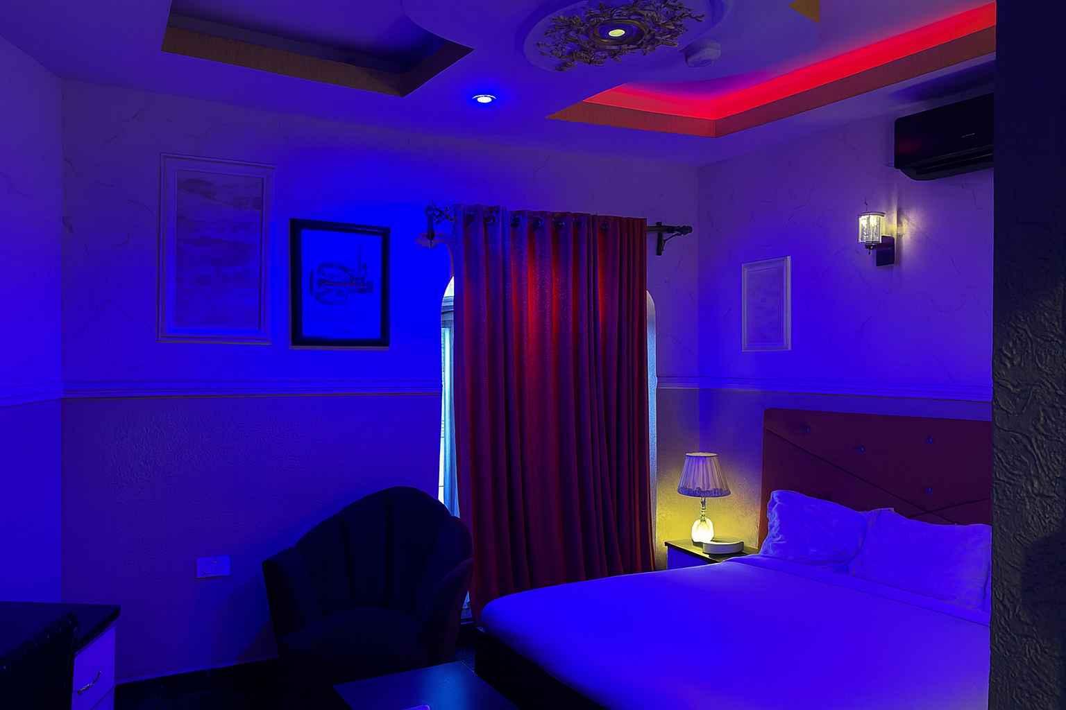 Room Dubai is thoughtfully designed for relaxation and convenience. It features a sizeable refrigerator, split-unit air conditioner, and hidden light displays that set the mood for comfort. Guests can enjoy a 32-inch smart TV for round-the-clock entertainment, alongside a reading table and chair for work or leisure. A well-crafted sofa chair adds a stylish touch, while multi-colored bedside lamps enhance the room’s ambience. Located on the first floor, the room also provides reliable intranet and internet connectivity, ensuring you stay connected throughout your stay.